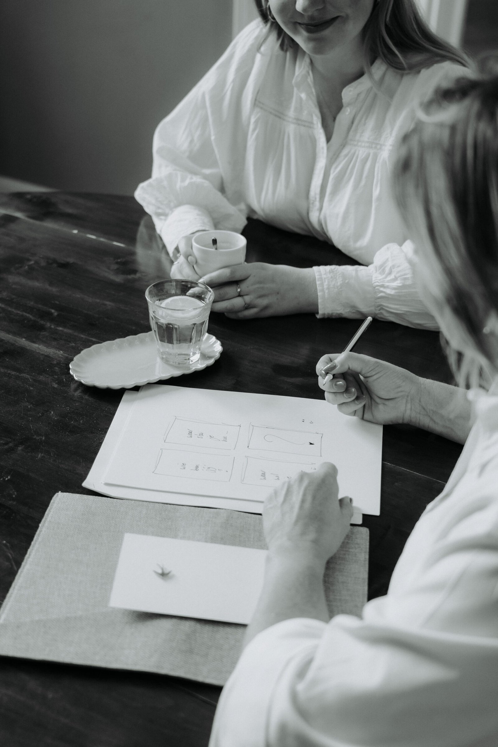 papier en een zwarte fineliner bij me heb om ideeën op te